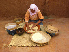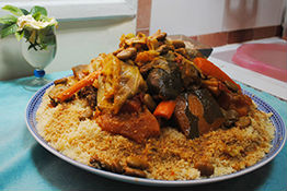 El cous cous es el plato nacional de los tres países del Magreb: Argelia, Marruecos y Tunes. El cuscús se hace tradicionalmente con sémola de la parte dura del trigo molida de tal forma que no se ha llegado a convertir en harina.