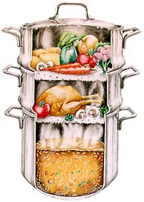 Aunque, en los tres países, los elementos básicos son los mismos, sémola y caldo o marga, los ingredientes varían. En Argelia va acompañado de garbanzos, de habas, de una gran cantidad de legumbres y hortalizas (alcachofas, calabacitas italianas, papas, berenjenas, chicharos, zanahoria) y, algunas veces carne.